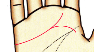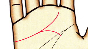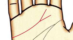 曲線的に木星丘に枝線が伸びる場合は物づくりの才能があります。手先が器用で手芸や工芸などが得意な人に多くみられる相です。人当たり良く誠実な付き合いをするタイプです。