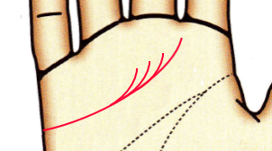 感情線の枝線が感情線と沿って上に伸びているのは、感情線の上に伸びる意味を強めています。社交的で明るく朗らかです。また、自己アピールも得意で親しみやすい雰囲気を持っています。