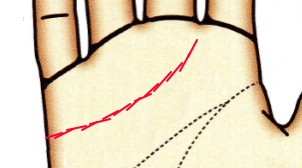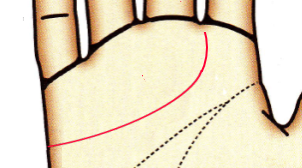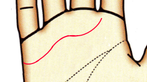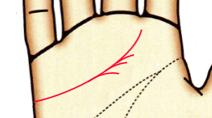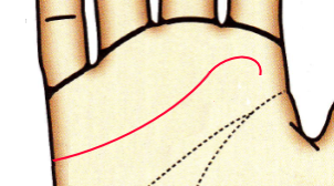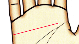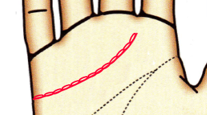 カーブを描かないのは感情に流されることなく、合理的に物事を判断するタイプ。感情よりも現実的・論理的な思考をします。愛情表現が乏しいため、相手に気持ちが伝わりにくい。頭脳線との間隔が近く、頭脳線の影響を受けて感情や情緒が抑制されています。