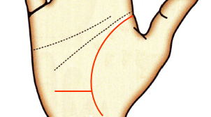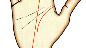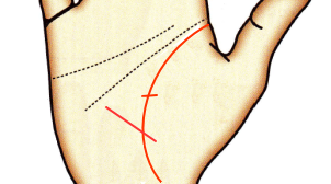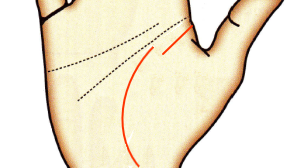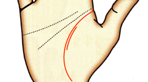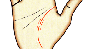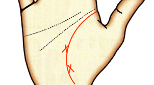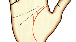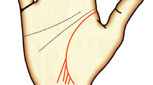 短い生命線から2~3本の線が出て、運命線との間に橋渡しをするような線が出ているのは、生命線の短さをカバーする意味をもちます。大病やケガをしても一命をとりとめます。