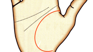 金星丘の面積が狭くなるため、生命力、気力、体力、活力が弱い虚弱体質の人。健康に不安を抱えがちで、消極的で覇気がありません。体質改善で健康増進できます。