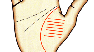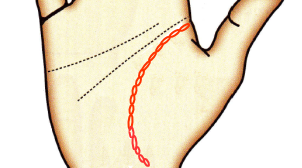 生命線の内側に薄い縦線(縦筋)がある場合は、多情多感の恋愛気質で、異性にモテるタイプとなります。